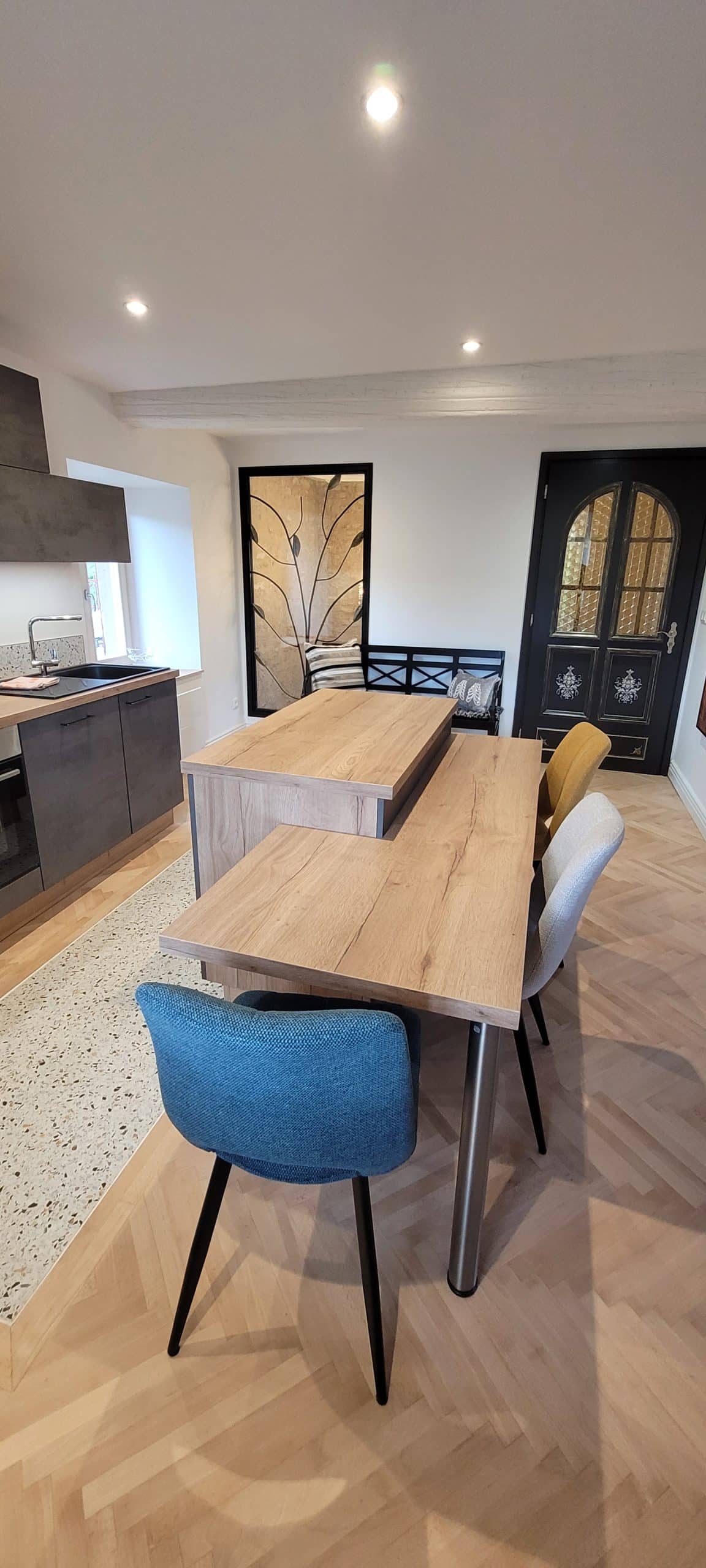 Dès que vous franchissez le seuil, l’atmosphère chaleureuse du Lavoir d’Adèle se révèle. Une entrée pensée pour accueillir avec douceur, entre authenticité du lieu et touches de modernité. Cet espace vous plonge immédiatement dans l’esprit paisible et raffiné de la maison, invitant à découvrir la suite de votre séjour.